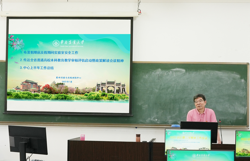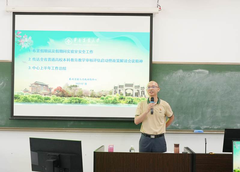 龚正想副主任布置了假期前及假期间实验室安全工作,对不断电实验室、开放实验室提出了明确、详细的暑假值班要求,要求各实验室主任负好责,做好值班人员、中心领导、物业的三级联动,有问题及时解决。李敏副主任传达全省普通高校本科教育教学审核评估启动暨政策解读会议精神,介绍了评估的流程和重点考察的内容,强调中心要及早学习相关文件,统一思想和认识,提早做好准备。